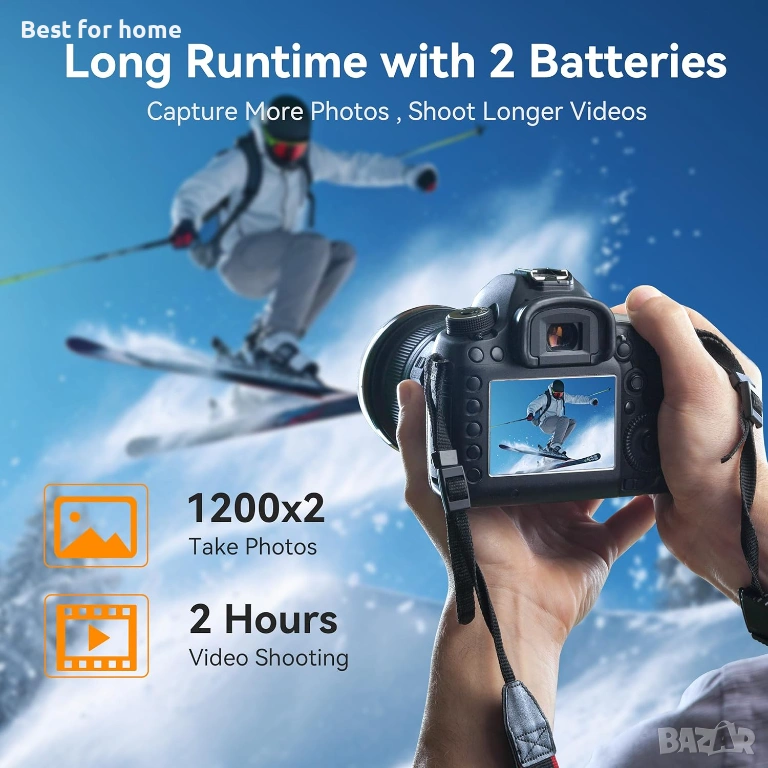 Какво получавате: Резервна батерия LP-E6 ×2 + USB-C кабел за зареждане ×1 + защитен калъф ×1 + ръководство за потребителя ×1.