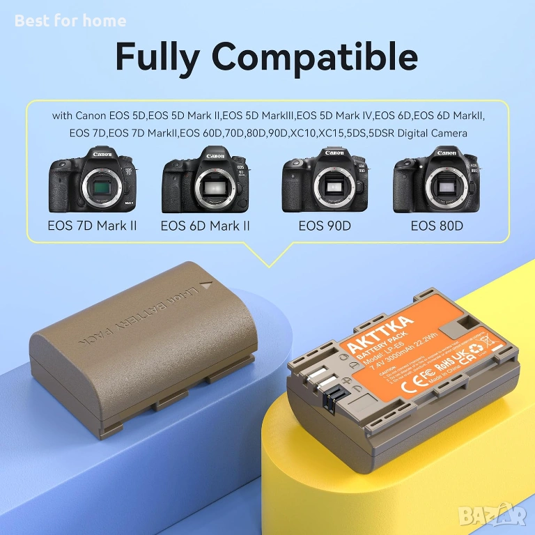 Пълна съвместимост: напълно съвместима с батерии Canon LP-E6 / LP-E6N за EOS 5D Mark II/III/IV, 5DS R, 6D/6D II, 7D/7D II, 60D/70D/80D/90D, EOS R/R5/R6/Ra и др.