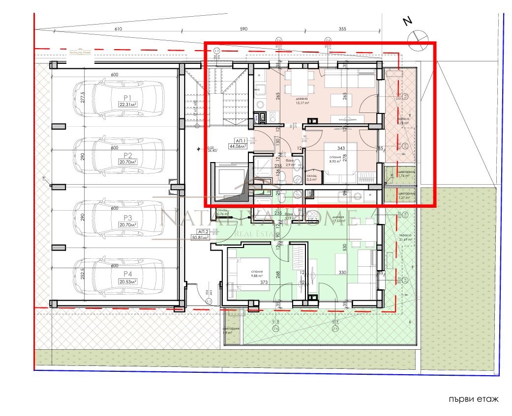 Апартментът е с площ 52,85 кв.м., разположен на партерен етаж. Жилището е с функционално разпределение просторна всекидневна с кухненски бокс и трапезария, уютна спалня, баня с тоалетна и излаз от двете стаи към веранда. Апартаментът се продава на тапа, с възможност довършване до ключ, с изградена инсталация за термопомпа, осигуряваща възможност за икономично отопление и охлаждане. В цената е включено собствено паркомясто.