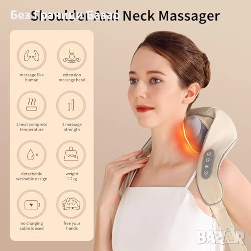 6D дълбок шиацу масаж, имитиращ движенията на човешки ръце