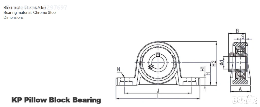 Лагери за опорен вал на опорен блок тип KP , различни диаметри и цени както следва;