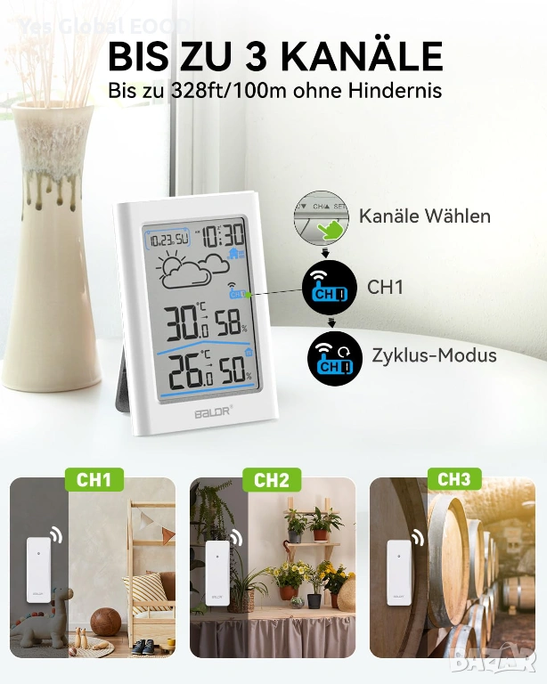 Безжичната метеостанция BALDR предоставя точна информация за вътрешната и външната температура и влажност, както и прогноза за времето. Оборудвана е с дигитален DCF радио часовник за автоматично сверяване на часа, будилник и ясен дисплей за лесно отчитане. Външният безжичен сензор осигурява надеждни данни за условията навън, а вътрешният термометър и хигрометър помагат за поддържане на комфортна среда у дома или в офиса.