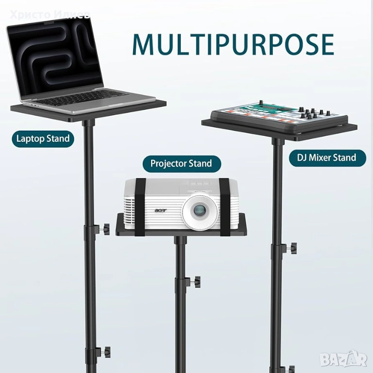 Rockjam Стативът Трипод е с плоча за поставяне на лаптоп или проектор. Здрав и стабилен, идеален за офис или у дома.