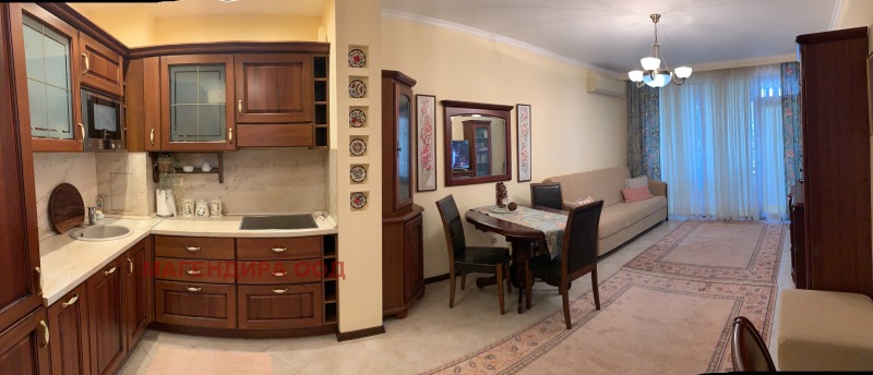 Апартаментът се продава с напълно оборудвана кухня - съдомиялна машина, микровълнова печка, хладилник, два телевизора, климатици Daikin, пералня.