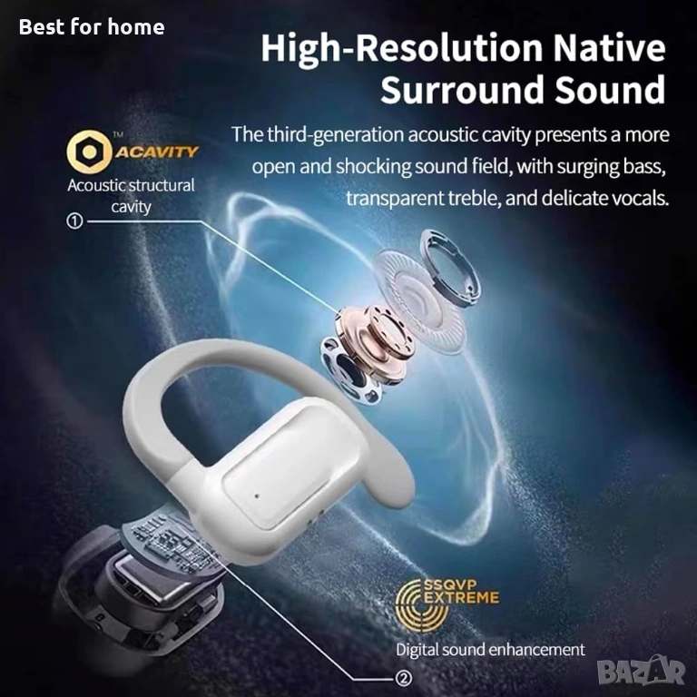 [Удобни слушалки с отворени уши] Ергономичните слушалки с отворени уши ви позволяват да останете свързани с обкръжението си, а дизайнът с отворени уши ги прави по-удобни и сигурни за носене, подходящи за всички хора.