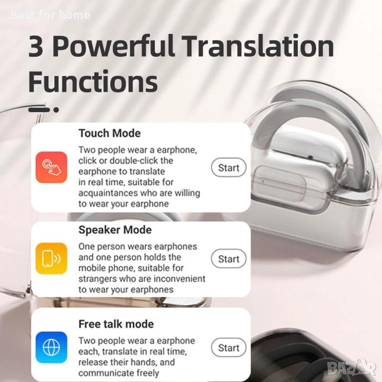 [Три в едно функционалност] Слушалките в реално време не само осигуряват отлични възможности за превод, но и позволяват многофункционално устройство за стрийминг на музика и телефонни разговори.