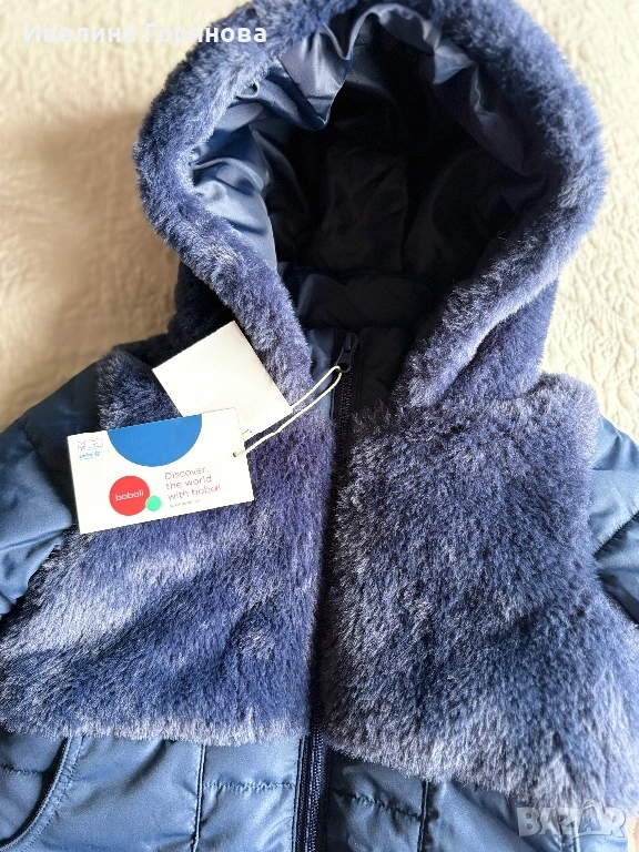 Оригинално детско зимно яке Boboli, внос. Якето е ново, с етикет, изключително топло и качествено. Горната част е с мека плюшена материя, има качулка, цип и удобни джобове. Налични размери 3-4г.