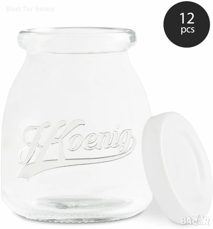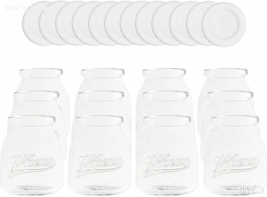 Голям капацитет: Комплектът включва 12 стъклени бурканчета по 200 мл всяко (общо 2.4 литра), което е идеално за цялото семейство.