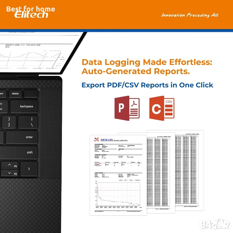Лесен анализ: Свързва се към компютър чрез USB. Софтуерът позволява експорт на данните в PDF и Excel формати – идеално за одити и проверки.
