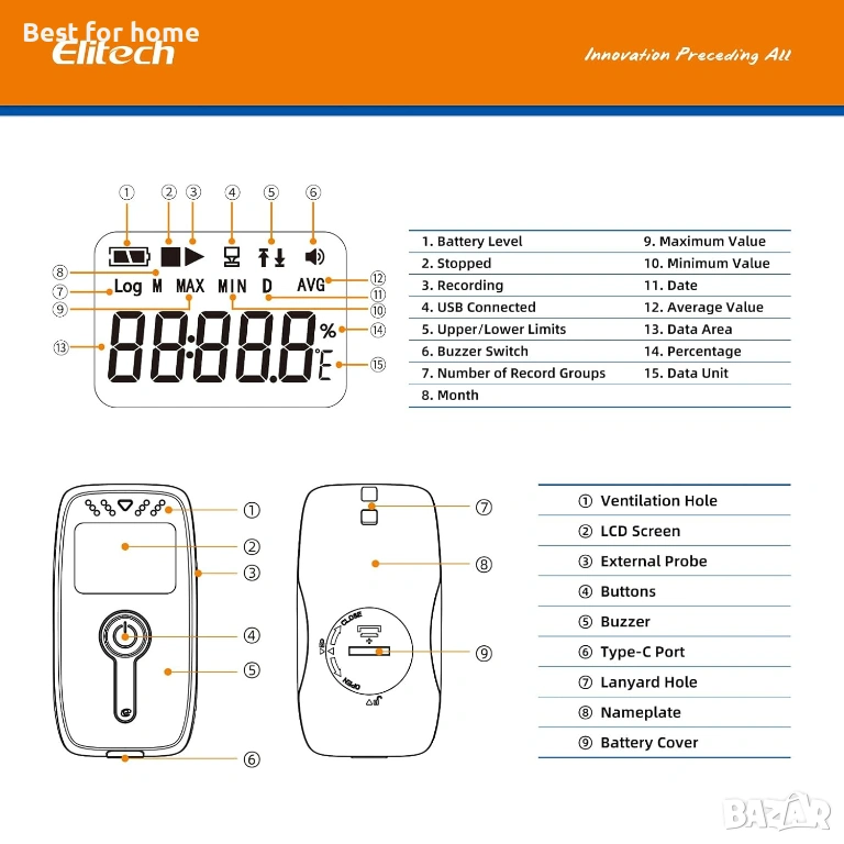 Висока точност: Оборудван с вградени сензори и външен температурен датчик (включен в комплекта) за по-голяма гъвкавост.