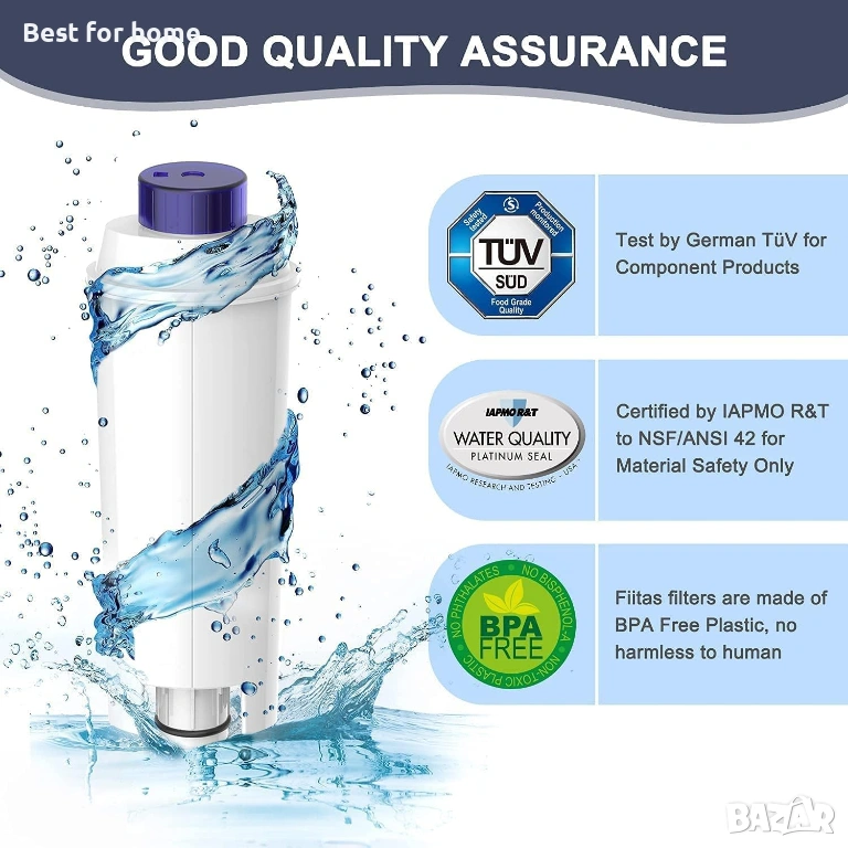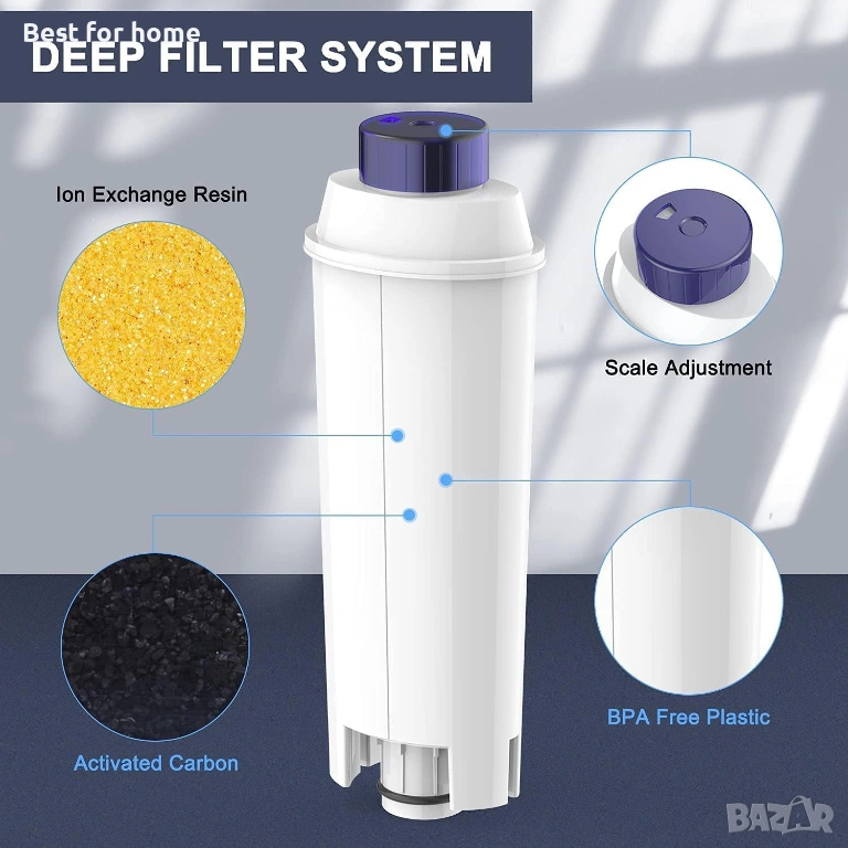 Омекотяване на водата: Ефективно намаляват съдържанието на варовик, хлор и тежки метали, което удължава живота на вашата кафемашина.