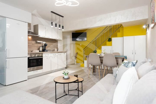 РАЗПРЕДЕЛЕНИЕ: Жилището разполага с площ от 75 кв.м., разпределена на две нива.