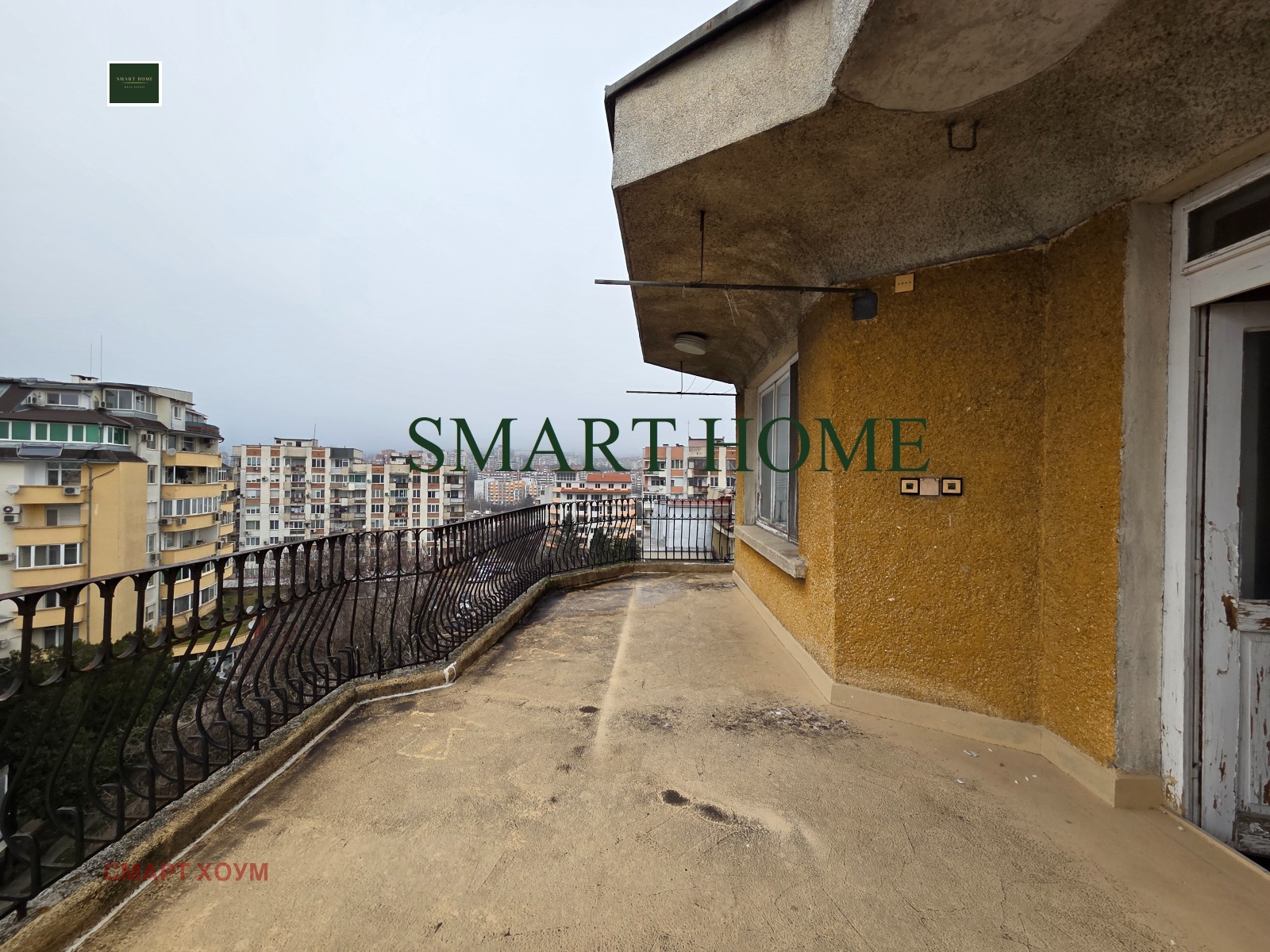 Агенция Смарт Хоум Ви предлагат многостаен апартамент находящ се в кв. Бузлуджа . Жилището е ситуирано на пети последен етаж в тухлена сграда старо строителство /без асансьор/. С чиста площ от 105 кв.м., разпределени между коридор, трапезария с преход към кухня, всекидневна, три самостоятелни спални, килер, баня, тоалетна и четири тераси. Изложение - И/З. Жилището се продава изчистено от мебели и подготвено за ремонт. Към апартамента прилежи таванска стая и избено помещение. Реф. 407