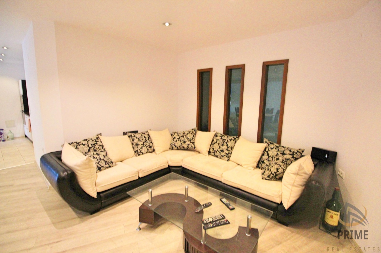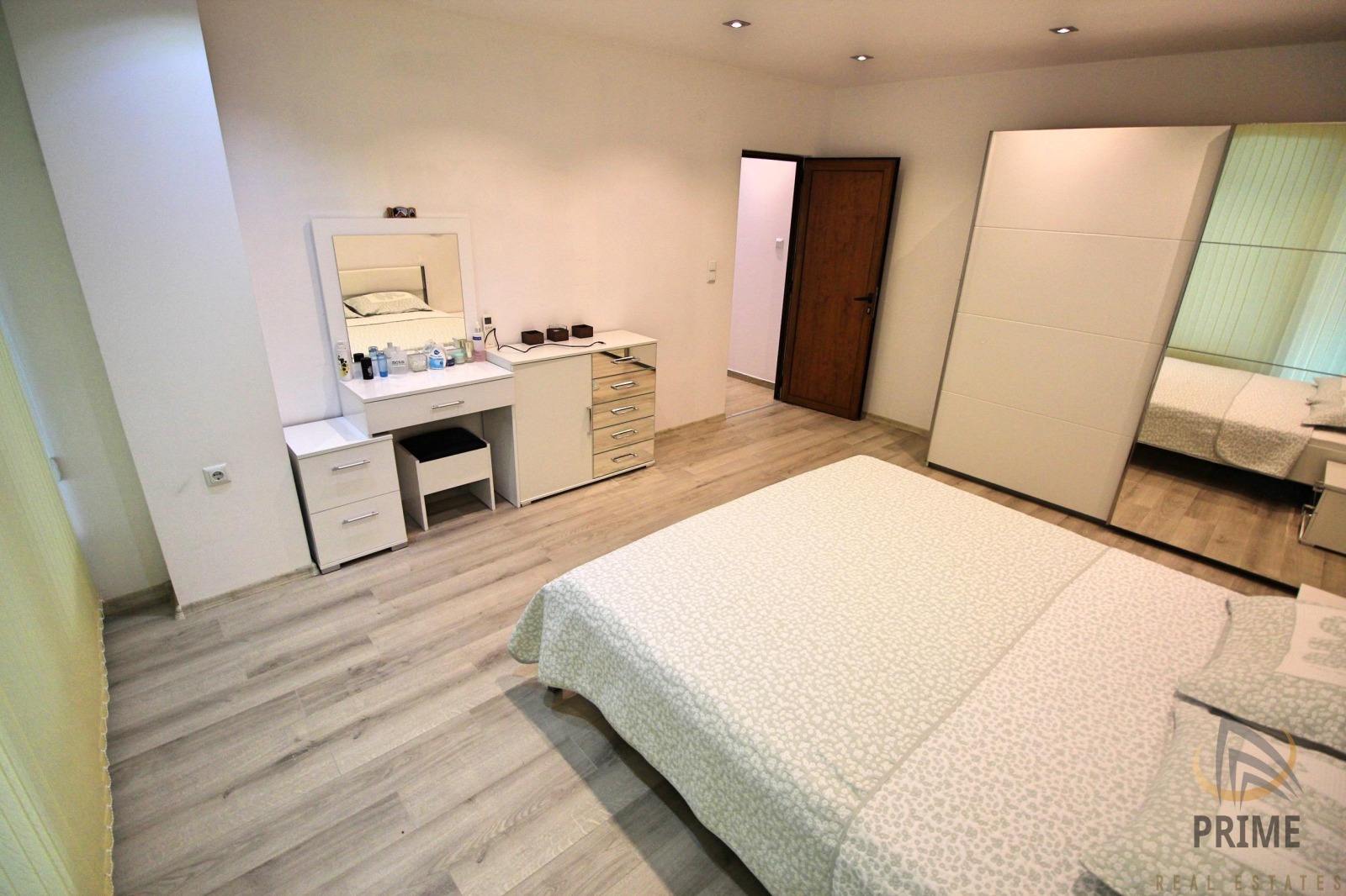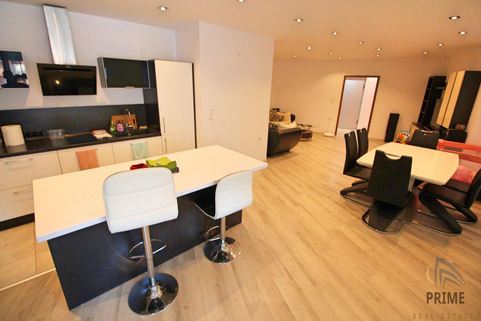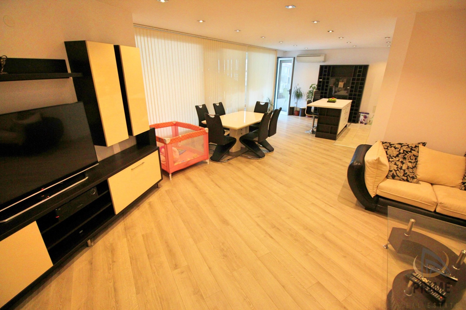 РАЗПРЕДЕЛЕНИЕ: Във впечатляващите 178кв.м. площ са разположени следните огромни пространствени помещения: коридор, хол с кухненски бокс и трапезария, две спални, баня с тоалетна - с монтирани и вана и душ кабина, втора тоалетна, мокро помещение, много голяма - остъклена тераса!