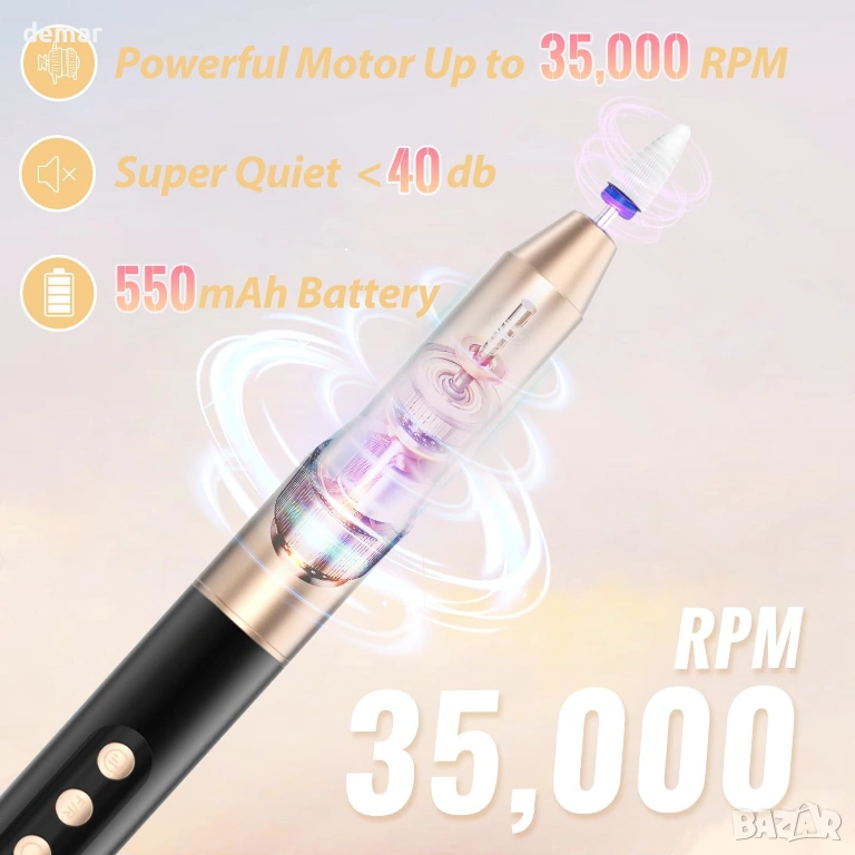 Безжична електрическа пила за нокти с UV LED лампа, 35000 об/мин