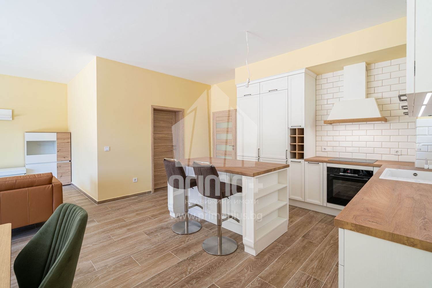 Входно антре, дневна с трапезария и кухн. бокс, който разполага с висок клас уреди, килер, тоалетна.