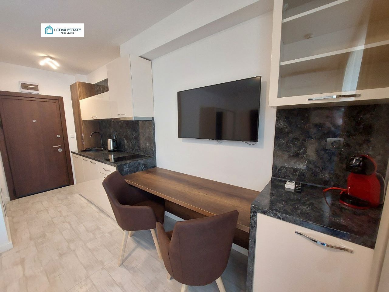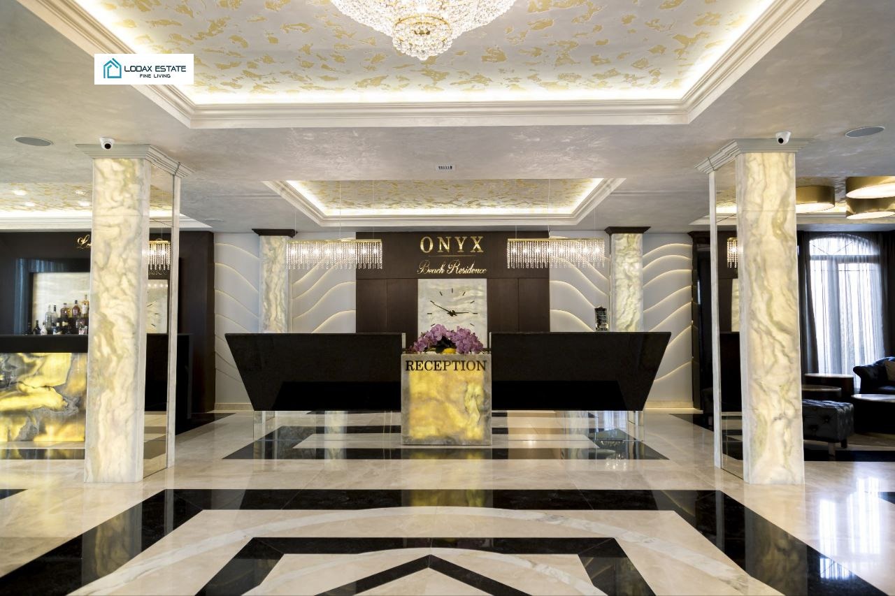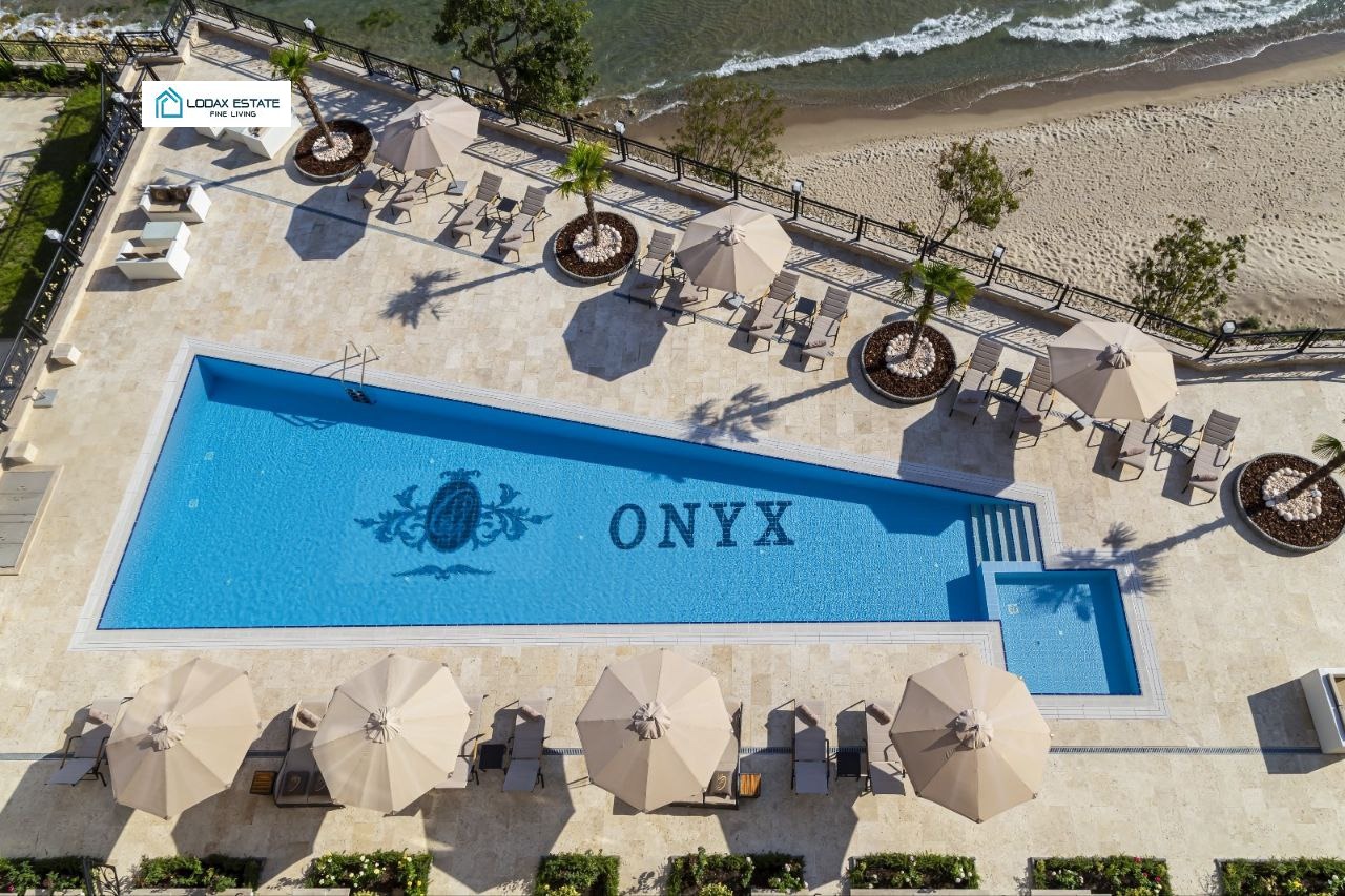 Предлагаме за продажба прекрасен едностаен апартамент на първа линия в най-луксозния комплекс по българското Черноморие/Свети Влас. Студиото се намира на 2-ри етаж и се състои от стая с кухненски бокс, баня и тераса. Продава се напълно обзаведено, с луксозен гранитогрес, санитария, боядисани стени, 1 инверторен климатик, луксозни вътрешни интериорни врати и блиндирани външни врати.