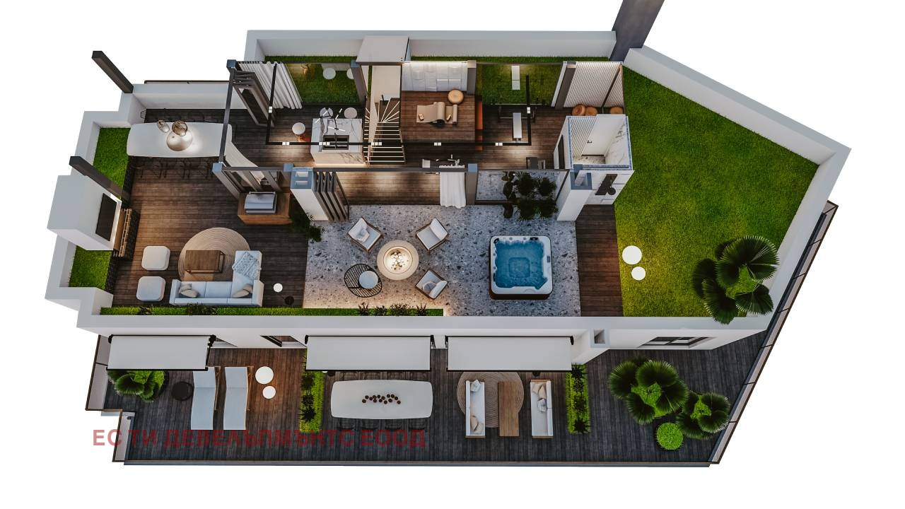 Ако си помислихте, че с това сме се изчерпали, то ще останете приятно изненадани от това, че жилището ще разполага с озеленена покривна тераса. Пространството предоставя не само зелен оазис за качествен отдих, но и зашеметяваща 360-градусова гледка към Родопите и Пловдив. Към апартамента са предвидени две покрити паркоместа! Всичко може да бъде изпълнено по желнаие на клиента за да стане Домът мечта!