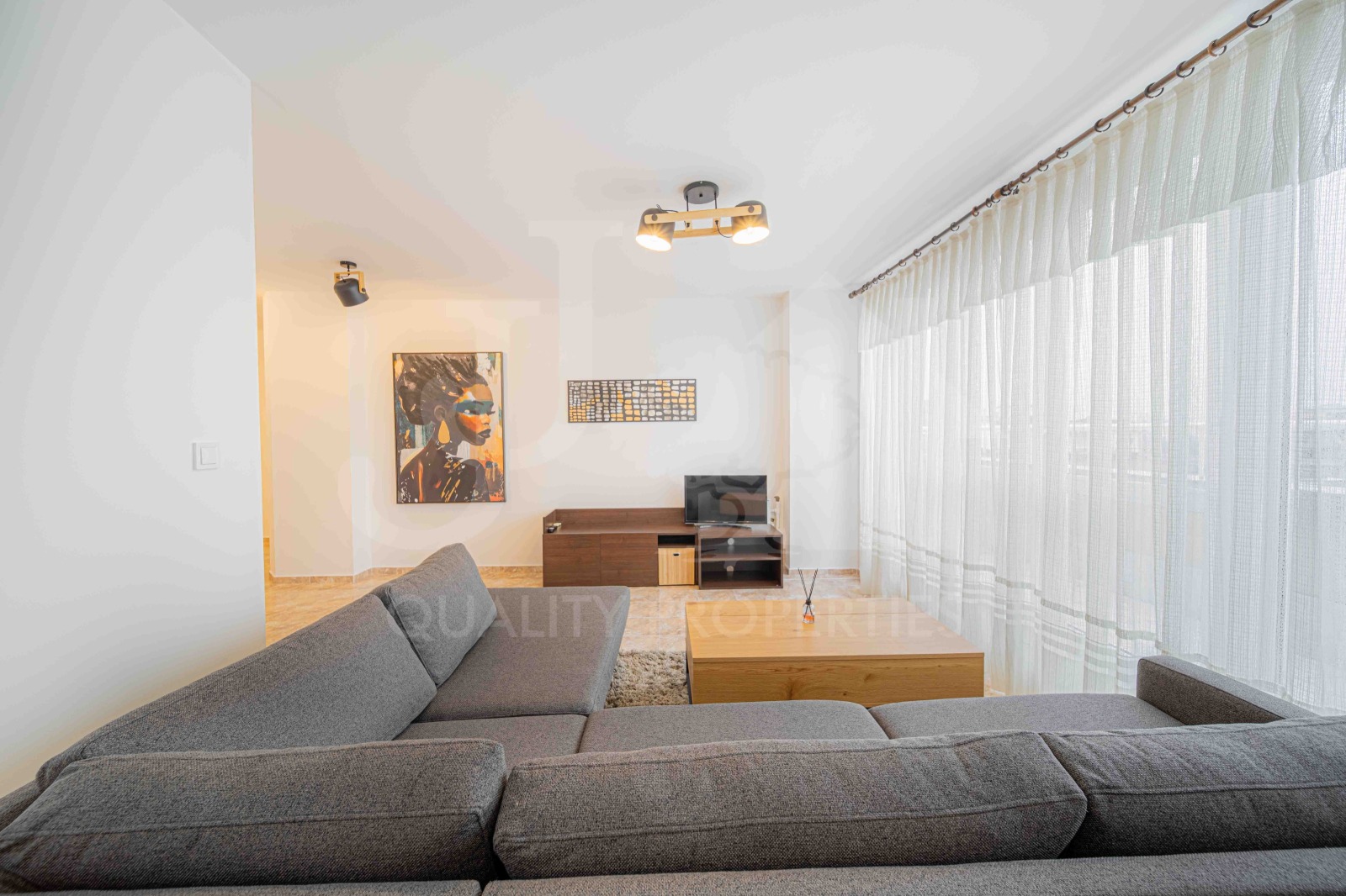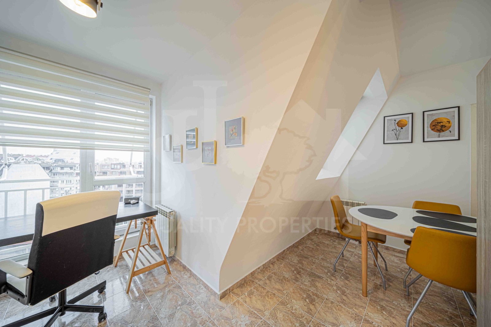 Предлагаме на Вашето внимание изцяло обзаведен двустаен апартамент след ремонт, находящ се на ул. Яков Крайков до ул. Даскал Манол. Районът е много комуникативен- има всякакви магазини, включително Кауфланд, различни заведения, банки, спирки на градски транспорт метростанция на 5-6 мин. пешеходно разстояние и много други. Апартаментът се намира на 6-ти последен етаж, в тухлена сграда с контрол на достъпа с чип, поддържани общи части, контрол на достъпа с чип и асансьор. Жилището е с площ около 86 кв.м. и се състои от: входно антре с допълнителна стая за склад, дневна с трапезарна част и кухненски бокс с всички необходими ел. уреди ( съдомиялна, пералня със сушилня, кафе машина фурна, котлони и т.н.), както и офис кът с хубава гледка, спалня, баня с тоалетна и хубава тераса. Жилището освен с добрата си локация се отличава и с това, че е с много функционално разпределение и е след цялостен освежителен ремонт и голяма част от мебелите и ел. техниката са чисто нови. Отоплението е на ТЕЦ с ниски месечни сметки, като има монтиран и климатик в дневната. Топлата вода е на ТЕЦ, но има и бойлер. Отдава се от физическо лице и не се начислява ДДС върху цената. Не се допускат домашни любимци! Работим с колеги по всички наши оферти! Водещ брокер: Диан Стоянов 0886 08 32 33. Оферта номер: 0218