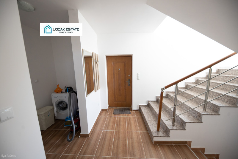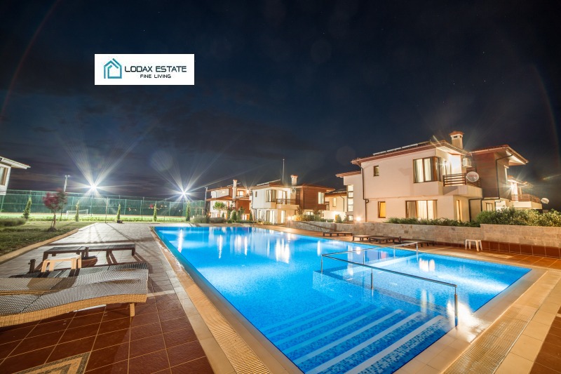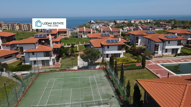 Предлагаме за продажба Обзаведена къща в с. Лозенец. Къщата се намира на пешеходно разстояние от централния плаж на Лозенец и още по-близо до плаж Корал. Къщата е на три нива - един сутеренен и два надземни етажа. Напълно обзаведена и оборудвана. Състои се от всекидневна с кухня, 3 спални и 3 бани. Къщата се намира в затворен комплекс от общо 13 къщи, който разполага. голям басейн, тенис корт и подземен паркинг. Таксата поддръжка 8,40 евро/кв.м.