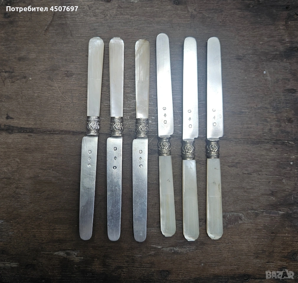 сребърни прибори 6 ножа, маркирани. → Обява 53021823
