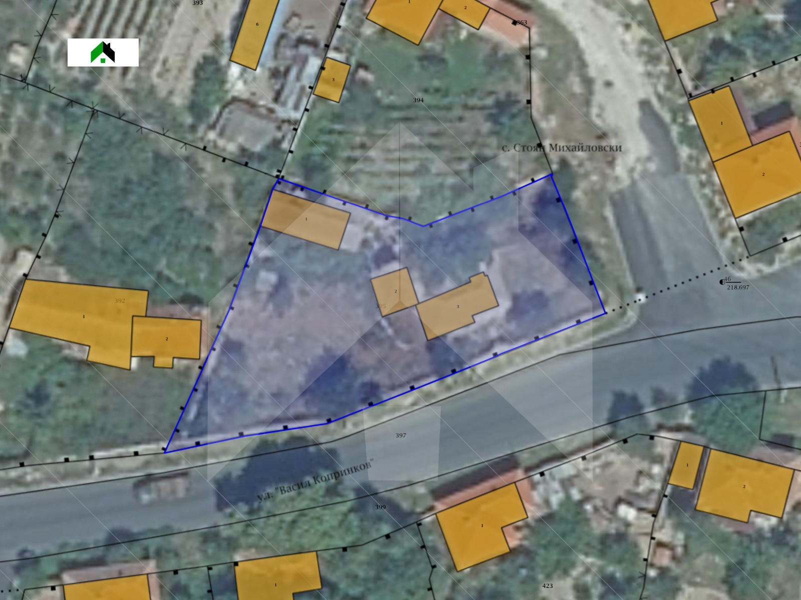 Имотът представлява ЗАКОННО построена ТУХЛЕНА къща на ДВА етажа със застроена площ от 48 кв.м. кв. и ОБЩА жилищна площ от 96 кв.м. с каменни основи и има следното разпределение: