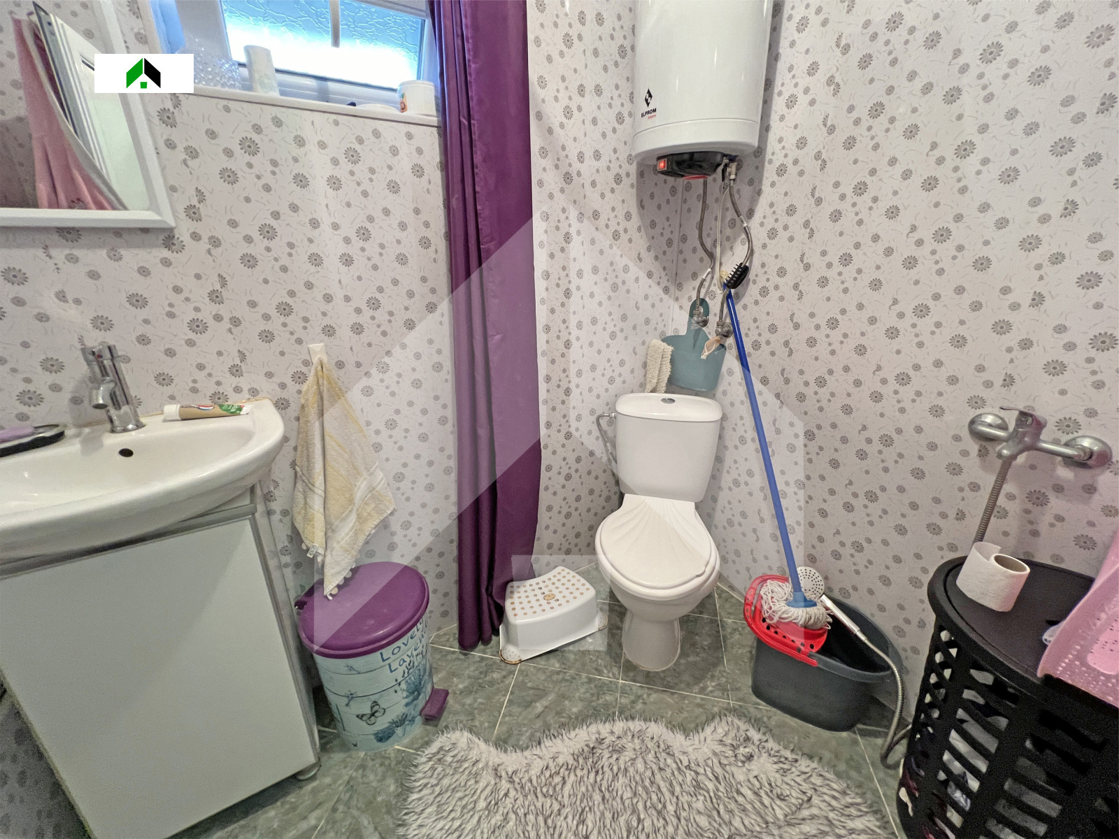 Имотът представлява ЗАКОННО построена, едноетажна ТУХЛЕНА къща с обща застроена площ 54 кв. м. с каменни основи и има следното разпределение: