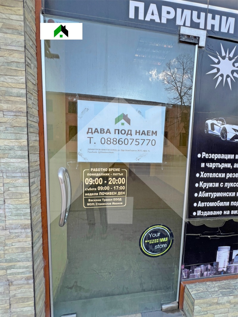 Имотът представлява търговско помещение с РЗП 33 кв. м., и има следното разпределение - търговска зала, малък склад (отделно помещение със стъклена преграда), санитарно помещение. Обектът е подходящ за магазин, офис, фризьорско ателие, чендж/бързи преводи бюро, студио за красота, масажи и др.
