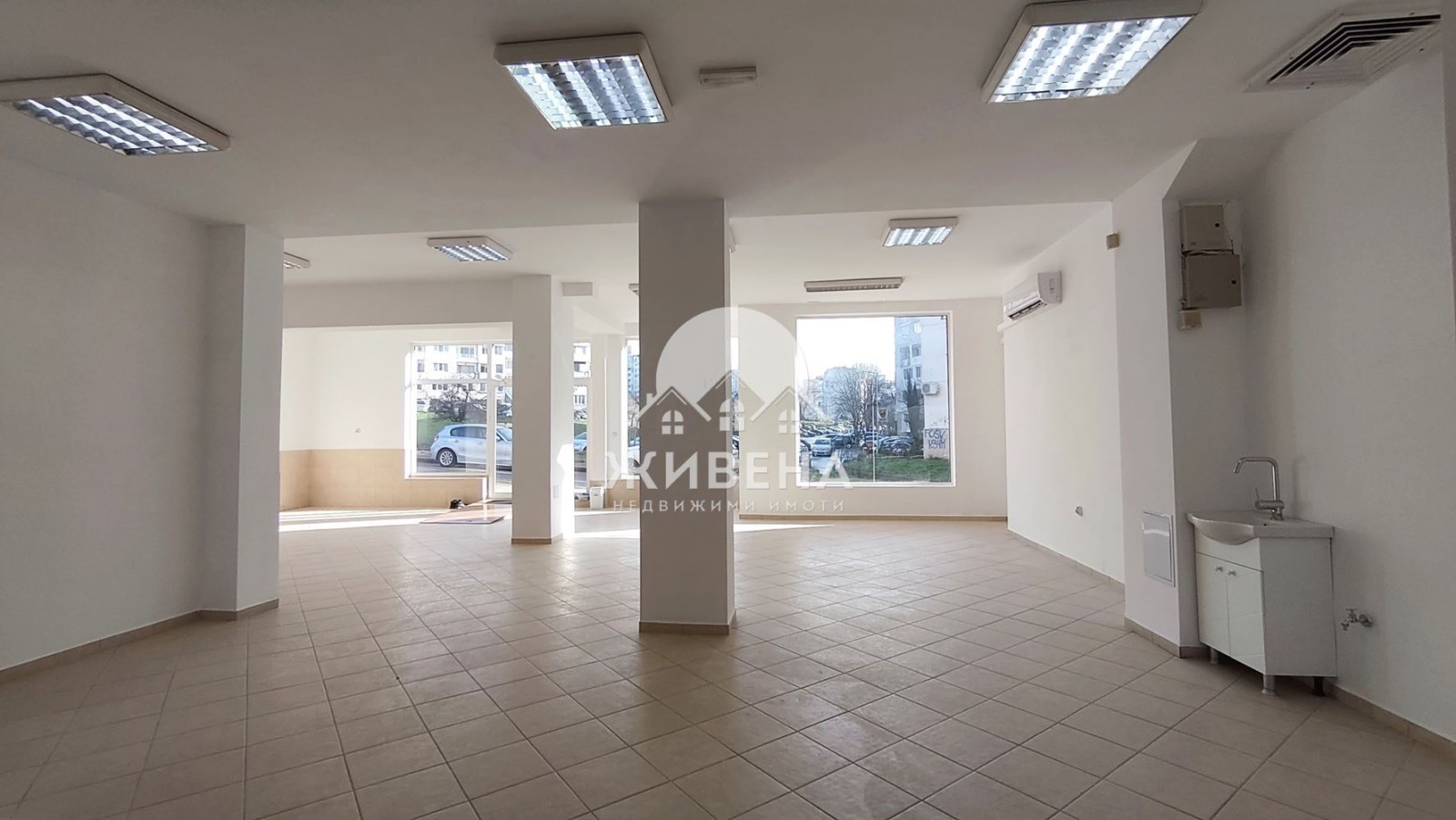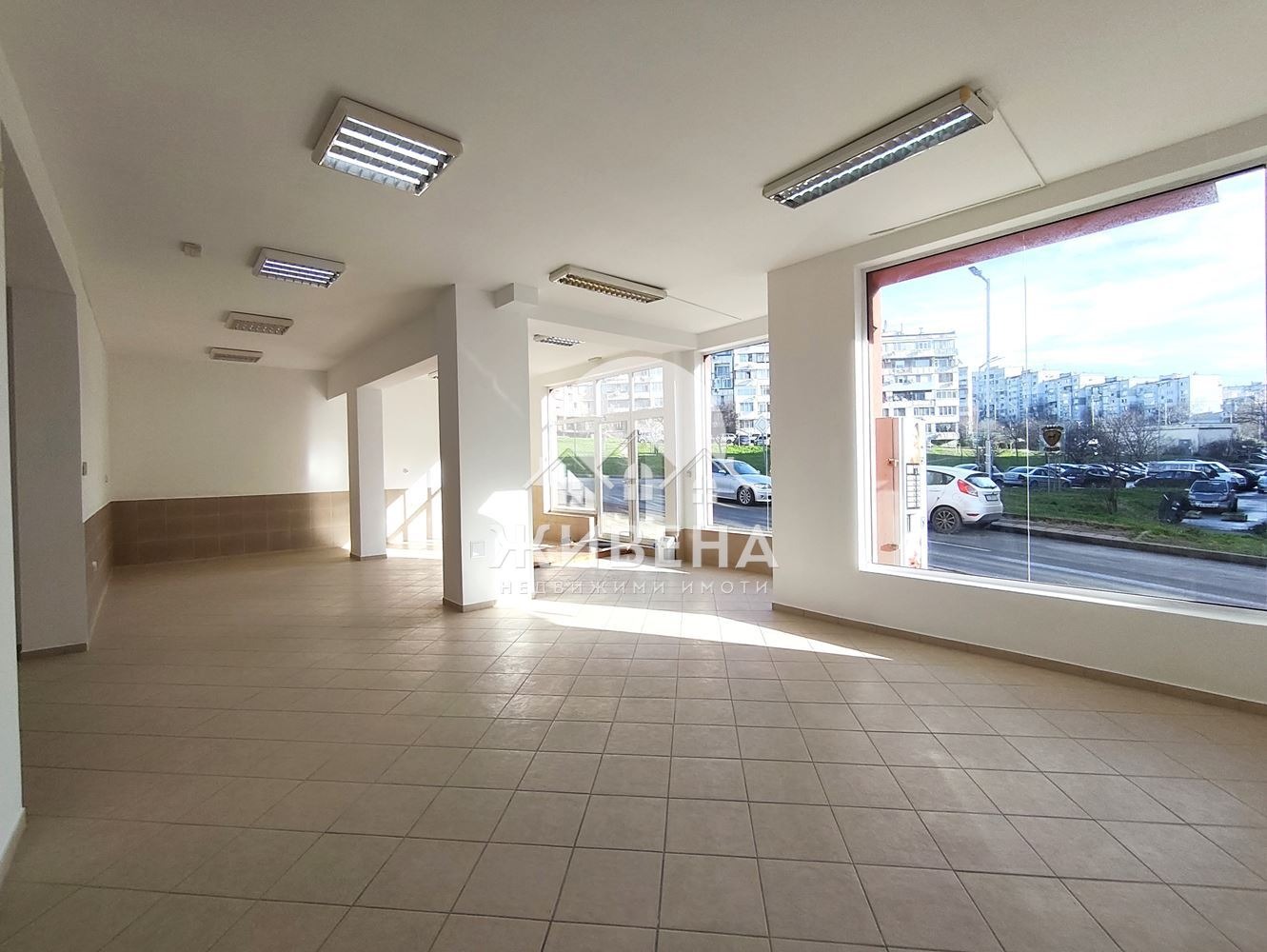 Агенция Живена отдава под наем обновен просторен магазин, изцяло на партерно ниво, с площ от 125 кв.м и големи витрини (9 м), в ж.к. Владиславово, в близост до ДКЦ 3 и други работещи магазини. Освежителен ремонт е направен веднага след предишния наемател, затова помещението е в безупречно състояние и готово за използване веднага. Обектът се състои от голяма търговска зала (която може да се раздели на кътове) с височина на тавана (3.5 м, с LED осветление), собствен санитарен възел с преддверие (с бойлер и мивка с батерия за топла вода). Предлага се без оборудване, след извършен основен ремонт. Разполага с климатик (24 ), вентилационна система, изведена мивка в залата (с топла вода от бойлер), също инсталация за СОТ, интернет и ТВ, чиито абонаменти се заплащат отделно. Голямо предимство е, че около магазина има свободна възможност за паркиране, без наличие на платени зони. Подходящо е за разнообразна търговска дейност, спедиторски услуги, йога център, салон за козметични или лазерни процедури (без фризьорски салон), офис, шоурум, мострена зала, склад за чиста стока и др. Има възможност за брандиране на прозорците и поставяне на външна реклама. Посочената цена е с включени данъци. Изисква се предплащане на депозит. Ж.к. Владислав Варненчик е най-големият квартал в гр. Варна, с население около 70 000 жители, което дава възможност за развитие на успешен бизнес в различни направления. При интерес за повече информация и оглед, моля, позвънете на посочения номер за връзка. Оферта 2916