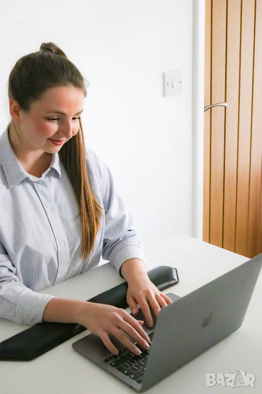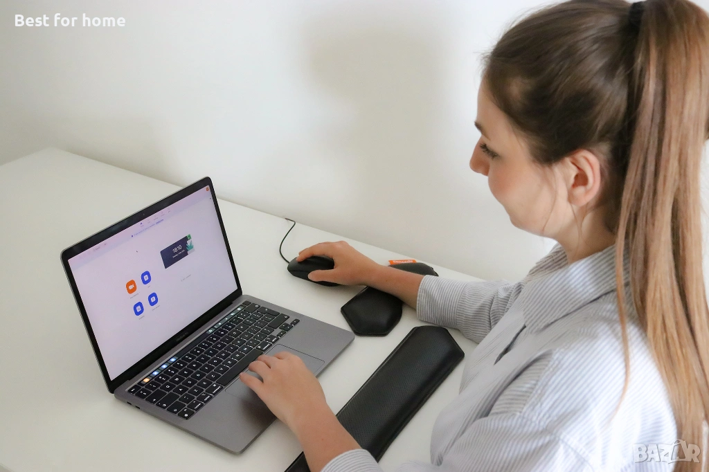 Ергономичен дизайн:Намалява напрежението в китките и предпазва от умора и болки при дълго писане на клавиатура.