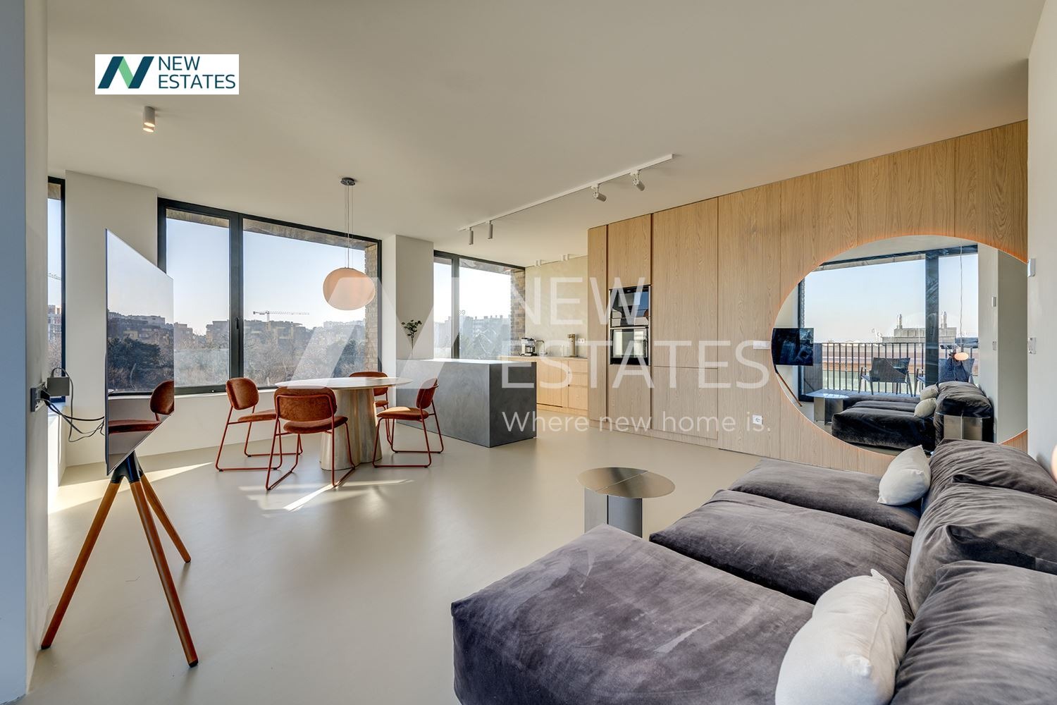 Жилището се намира на 5-ти етаж от 7, сградата е напълно завършена и въведена в експлоатация. Общата площ е 128 кв.м, функционално разпределена, осигурявайки простор и комфорт за съвременен начин на живот. Апартаментът се предлага напълно завършен и обзаведен, с изградена инсталация за подово отопление и индивидуално газово котле. Кухнята е оборудвана с висок клас електроуреди NEFF, а подовите настилки в стаите и баните са изпълнени с елегантен микроцимент, който подчертава модерната визия на интериора.