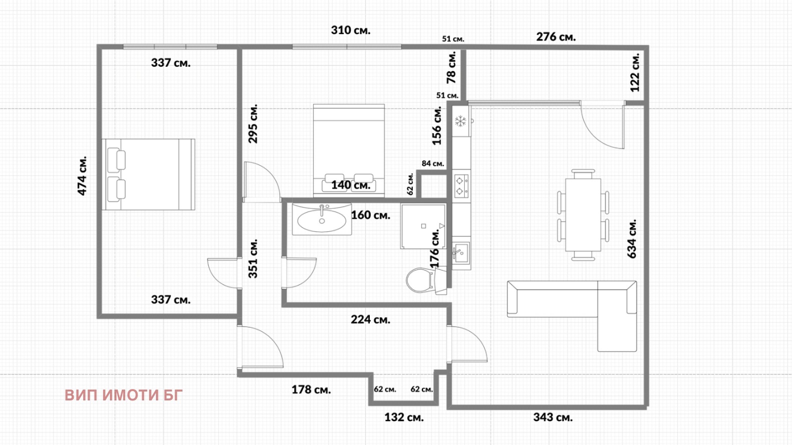 Продава се обзаведен без гардероб, кухненско оборудване и шкафове
