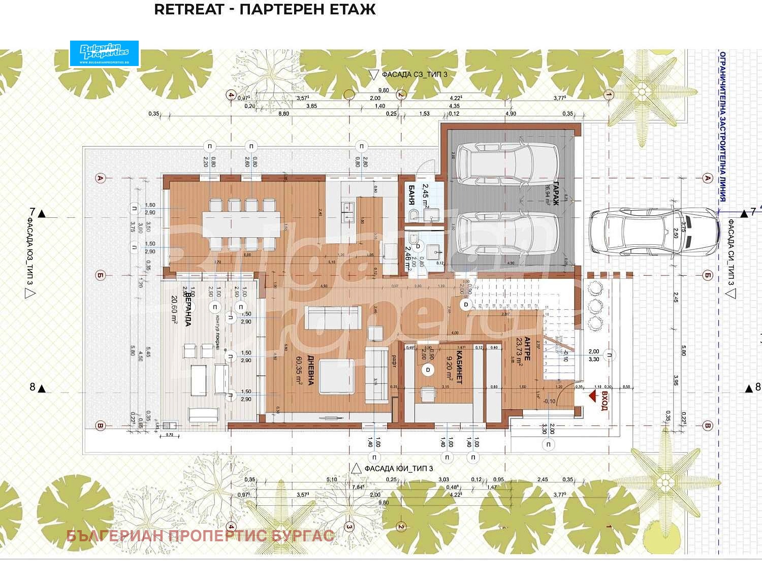Къща тип RETREAT - площи: ЗП - 172.80 кв.м., РЗП - 357.70 кв.м.