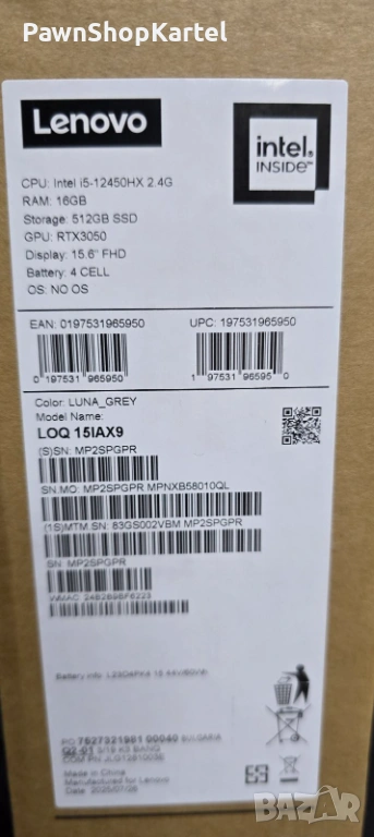 Продавам Lenovo LOQ 15IAX9 – мощен гейминг лаптоп, подходящ за игри, работа, програмиране и графични приложения.