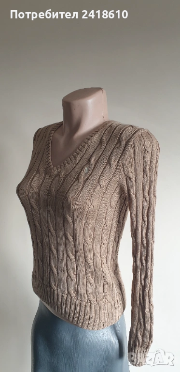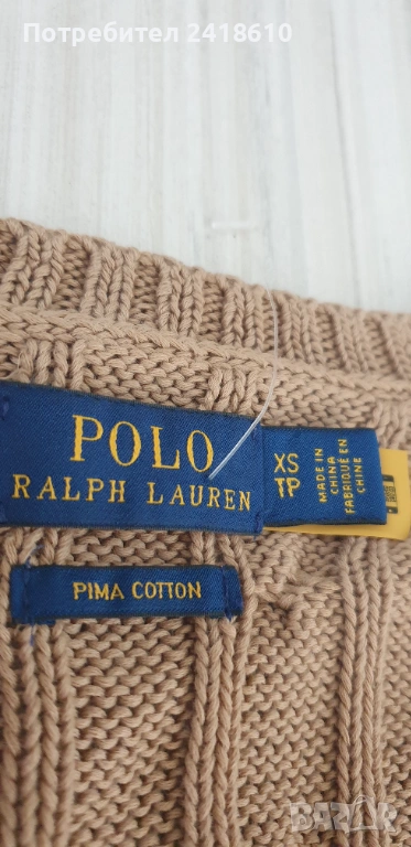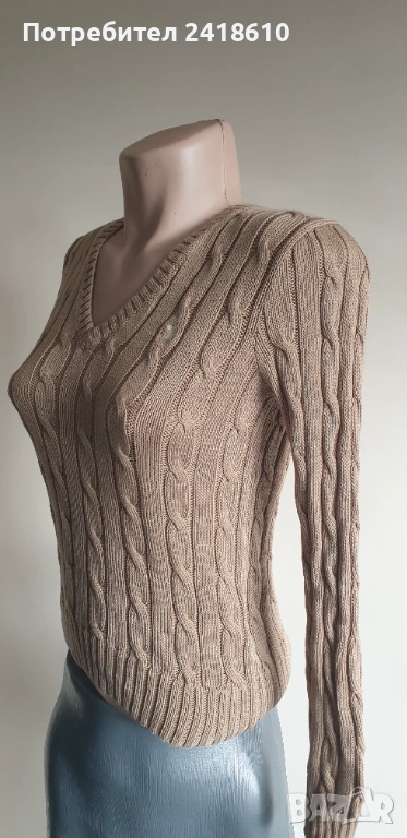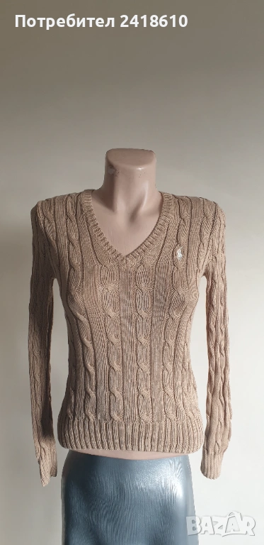 POLO Ralph Lauren Cable Pima Cotton V - Neck Size XS НОВО! ОРИГИНАЛ! Дамски Пуловер!