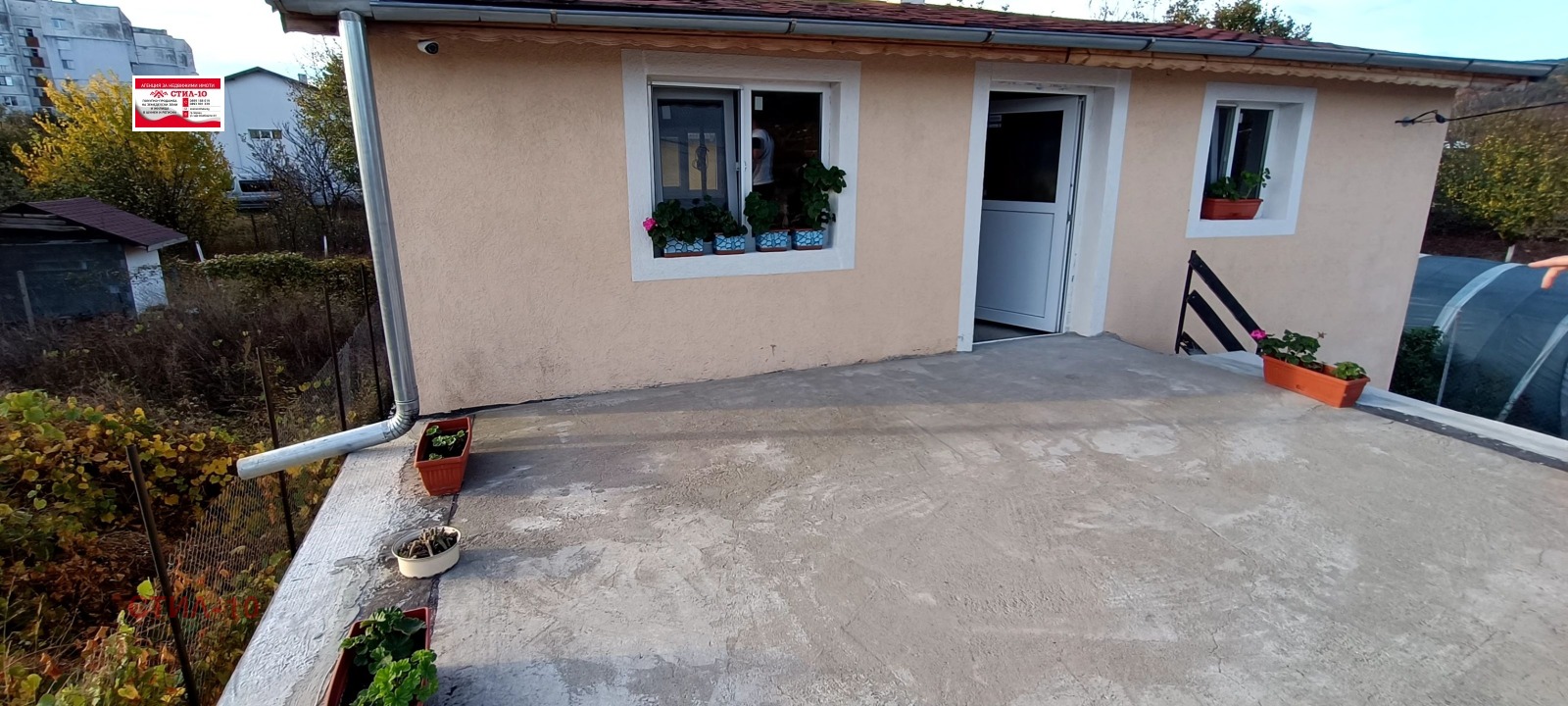 Имотът е в много добро състояние подменена ПВЦ дограма, настилки ламинат и теракота, отопление чрез климатици. Парцелът е равен и имотът се предлага с наличното обзавеждане. Достъпът е целогодишен с лек автомобил. Намира се в тих и спокоен район, в близост до жилищни блокове. Ключ в агенцията.