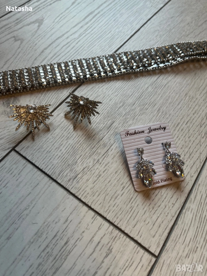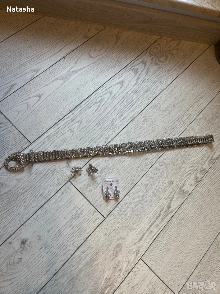 1Дамски обеци блестящи 10лв за брой.Дамски колан блестящ 15лв
