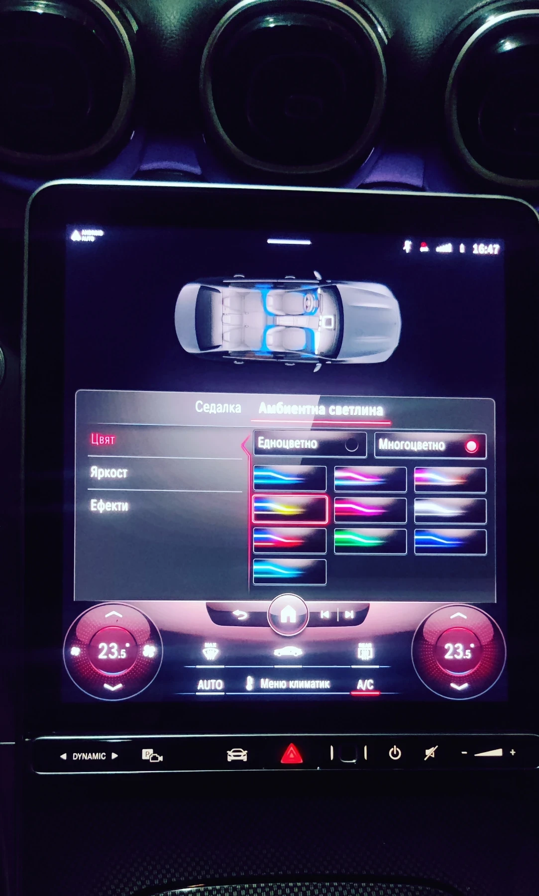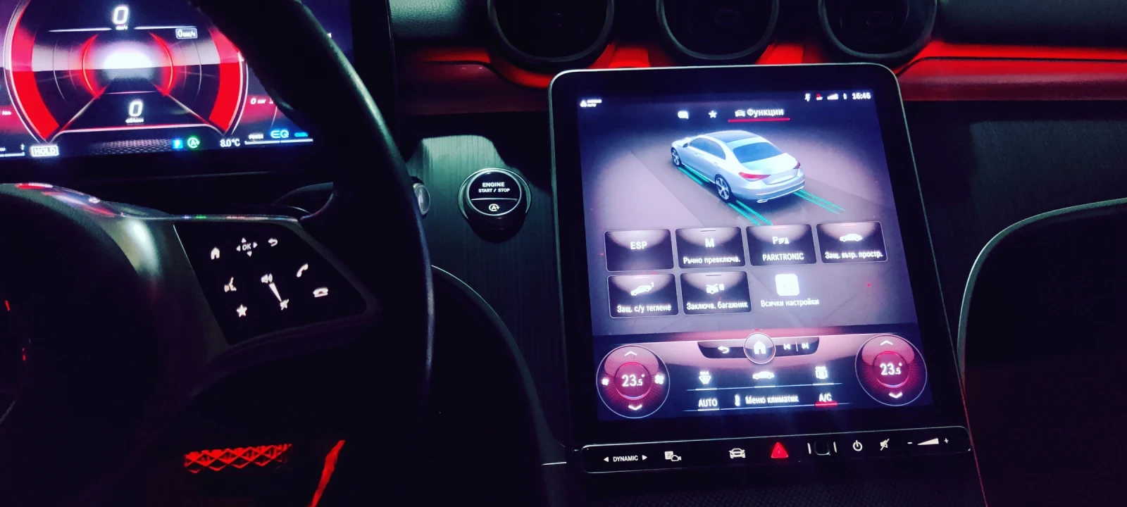 Пакет AMG 63 , Реални километри, подгрев, обдухване, ел. седалки с памет, задна камера, 4 режима на управление, амбиентно осветление, подгрев на волан, сензор мъртва точка, сензор за налягане в гуми, сензор за опастност на пътя отпред и отзад, панорамен таван, затъмнени стъкла, LED фарове с автоматични къси и дълги, сензор за дъжд, 9степенна автоматична кутия, проектор с лого на огледалата. Колата е без забележки! - Поставени защитни стъклени протектори на екраните срещу надраскване Автомобилът разполага с още: - Разполага с оригиналната касетка за багажник, с която идват почти всички нови модели. - Night Package Конфигурация: ВЪНШЕН ЦВЯТ И ТАПИЦЕРИЯ 197 - обсидиан черен 118 - синтетична кожа ARTICO, невасиво / черно ОБОРУДВАНЕ НА АВТОМОБИЛА 01U - Подготовка за Навигационни услуги 0L - L 14U - Пакет " Смартфон интеграция" 16U - Apple CarPlay 17U - Android Auto 22U - MBUX Entertainment 234 - Активен асистент за мъртвия ъгъл 241 - Ел. регулируема предна лява седалка с памет 242 - Ел. регулируема предна дясна седалка с памет 243 - Активен асистент за лентата за движение 258 - Активен спирачен асистент 275 - Пакет " Мемори" за предните места 30P - Пакет " Отделения за вещи" 1. 310 Двойна поставка за бутилки и чаши 321 - Скенер за пръстов отпечатък 325 - Централно разположена въздушна възглавница 32B - Упътване за експлоатация и сервизна книжка, български 32U - Персонализация на звука 33U - Дистанционни услуги PLUS 345 - Чистачки със сензор за дъжд 351 - Mercedes-Benz система за аварийни повиквания 355 - MBUX с разширени функции 421 - Автоматична скоростна кутия 9G-TRONIC 440 - Темпомат с ограничител на скоростта SPEEDTRONIC 459 - Окачване с адаптивни регулируеми демпфери 475 - Система за следене налягането в гумите 504 - Асистент за лимита на скоростта 525 - MBUX мултимедийна система 537 - Цифрово радио 58U - Таван в плат, кристал сив 668 - Защитно опаковане за транспорт, вкл. транспортна кука 670 - Функция остатъчна топлина (REST) 70B - Сигнална жилетка за водача 757 - Централна конзола в черно гланц 75B - USB пакет 79B - Подготовка за дигитално радио 7U3 - Спортни седалки 810 - Озвучителна система 876 - Пакет " Интериорно осветление" 893 - KEYLESS-GO Start/Stop 927 - Система за регулиране на емисиите с EURO 6 технология 94B - Интегриран стартер-генератор (ISG), Gen. 2 964 - Изпускателна система COPF с трета ламбда сонда 968 - Сертификат за произход, EU6 B01 - EQ Boost стартер-генератор B12 - Комплект инструменти (за смяна на гума) B51 - TIREFIT B59 - Програми за шофиране DYNAMIC SELECT H64 - Декоративни елементи с метализирана структура P17 - Пакет " KEYLESS-GO комфорт" 1. 871 HANDS-FREE ACCESS 881 Дистанционно затваряне на багажника P29 - Линия " AMG" , 1. L5C Спортен мултифункционален волан в кожа напа 891 Амбиентно интериорно осветление U34 Табло и горни панели на вратите в кожа ARTICO с напа оптика P31 - Линия " AMG" , екстериор 772 AMG оптичен пакет P35 - DIGITAL LIGHT 1. 628 Асистент за адаптивни дълги светлини PLUS 318 DIGITAL LIGHT P49 - Пакет " Огледала" 1. 587 Амбиентно осветление с проектиране логото на марката 500 Ел. сгъваеми външни огледала 249 Огледала (централно и ляво) с автоматично затъмняване при заслепяване P53 - ENERGIZING AIR CONTROL 1. 840 Подсилено затъмнени тонирани задни стъкла PAV - Пакет " Зима" 873 Ел. отопление на предните седалки 875 Отопление на миещата течност за чистачките 443 Ел. отопляем волан PBG - MBUX Навигация Premium 365 Навигация от твърд диск 367 Подготовка за Live Traffic Information 383 Комуникационен модул за услугите Mercedes me connect (LTE вариант) PWU - Пакет " Premium" 1. 916 Резервоар с увеличен обем 580 Автоматична климатична инсталация THERMATIC 464 Д