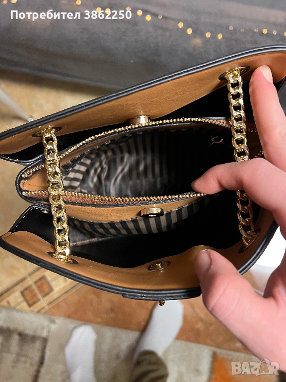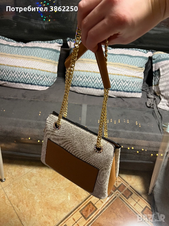 Здравейте продавам тази чанта, на снимките изглежда по-малка отколкото е. Чисто нова, никога не е ползвана, подарък, много е хубава!