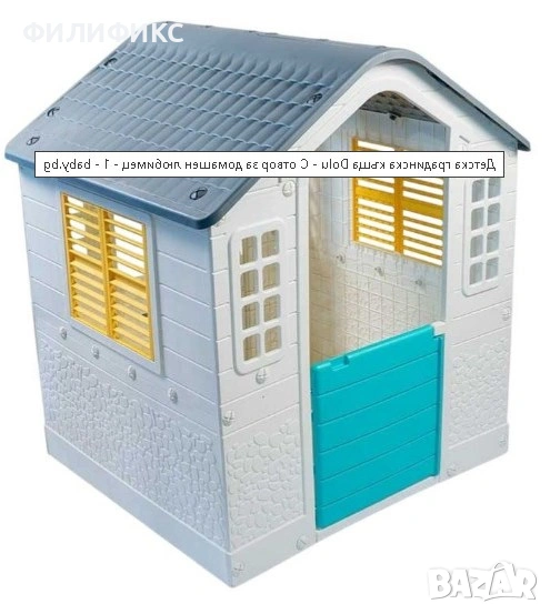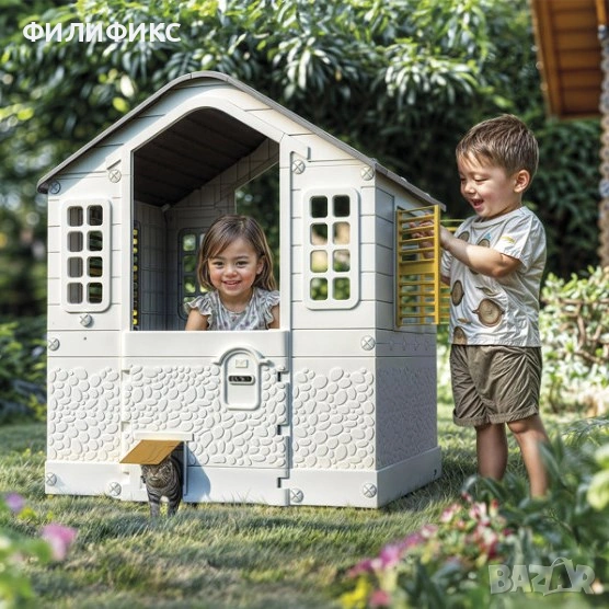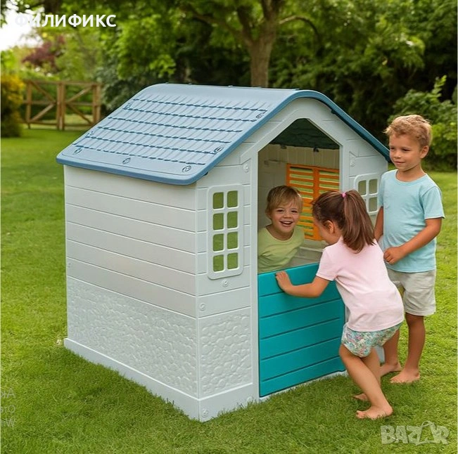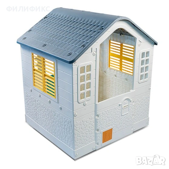 Къщичката е изработена от здрав и устойчив материал, подходящ за външни условия, което я прави идеална градинска играчка за деца. Благодарение на просторния си размер, тя е подходяща за ролеви игри, социализиране и развитие на въображението. Децата могат да я използват като къщичка за игра навън, детска дом-къща или място за собствени приключения.