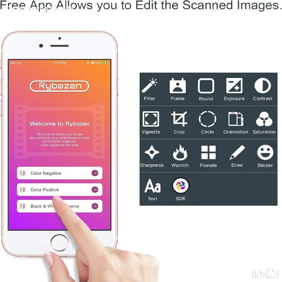 Компактен скенер за диапозитиви за смартфон – лесен начин да дигитализирате вашите 35 mm негативи и диапозитиви директно с телефона си. Поставете филма в скенера, използвайте вградено LED осветление и снимайте с камерата на смартфона си, за да получите цифрови изображения, готови за редактиране, споделяне и архивиране. Отлично решение за всеки, който иска да върне стари спомени в съвременен цифров формат без скъпа техника или компютър.