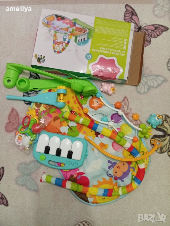 Активна гимнастика като нова,със страхотно пиано с много мелодии и функции. Само един клавиш не работи,но така го купихме,което не пречеше на малкия да я обожава :) свърши ни страхотна работа и си търси ново бебе за игра :)