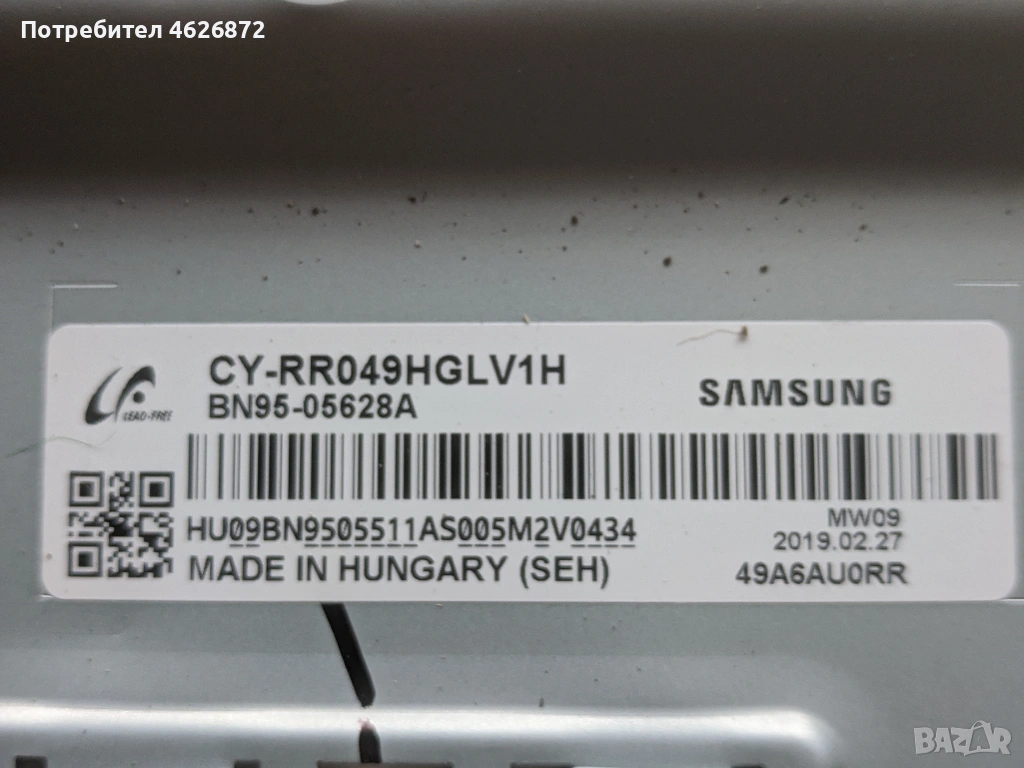 SAMSUNG QE49Q60RATXXC-BN41-02695A-L55EB_RDY /BN44-00932H, снимка 1 - Части и Платки - 53026005 SAMSUNG QE49Q60RATXXC-BN41-02695A-L55EB_RDY /BN44-00932H, снимка 2 - Части и Платки - 53026005 SAMSUNG QE49Q60RATXXC-BN41-02695A-L55EB_RDY /BN44-00932H, снимка 3 - Части и Платки - 53026005 SAMSUNG QE49Q60RATXXC-BN41-02695A-L55EB_RDY /BN44-00932H, снимка 4 - Части и Платки - 53026005 SAMSUNG QE49Q60RATXXC-BN41-02695A-L55EB_RDY /BN44-00932H, снимка 5 - Части и Платки - 53026005 SAMSUNG QE49Q60RATXXC-BN41-02695A-L55EB_RDY /BN44-00932H, снимка 6 - Части и Платки - 53026005 SAMSUNG QE49Q60RATXXC-BN41-02695A-L55EB_RDY /BN44-00932H, снимка 7 - Части и Платки - 53026005 SAMSUNG QE49Q60RATXXC-BN41-02695A-L55EB_RDY /BN44-00932H, снимка 8 - Части и Платки - 53026005 SAMSUNG QE49Q60RATXXC-BN41-02695A-L55EB_RDY /BN44-00932H, снимка 9 - Части и Платки - 53026005 SAMSUNG QE49Q60RATXXC-BN41-02695A-L55EB_RDY /BN44-00932H, снимка 10 - Части и Платки - 53026005 1/10