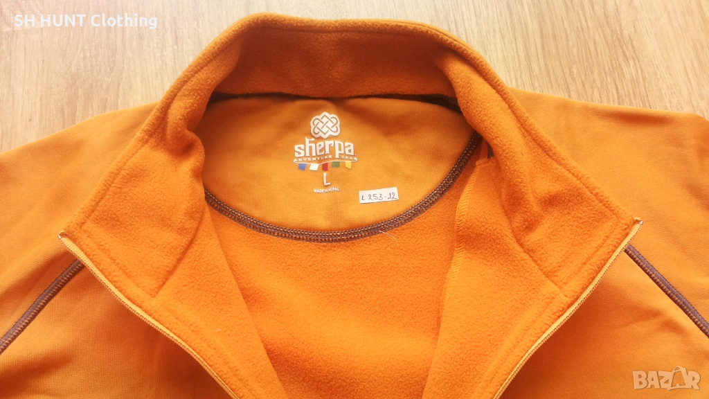 Марка: Sherpa ADVENTURE GEAR POLARTEC Power Dry - поларена горница L253-12 Размер: L - ширина под мишниците 59 см , разтяга се до 72 см , дължина 78 см заедно с яката , 73 см без яката.