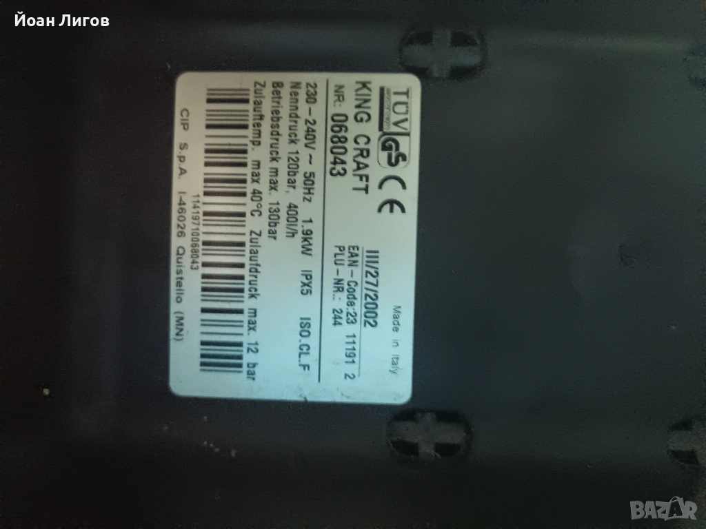 Водоструйка King Craft – 1.9 kW, 130 bar → Обява 53026158