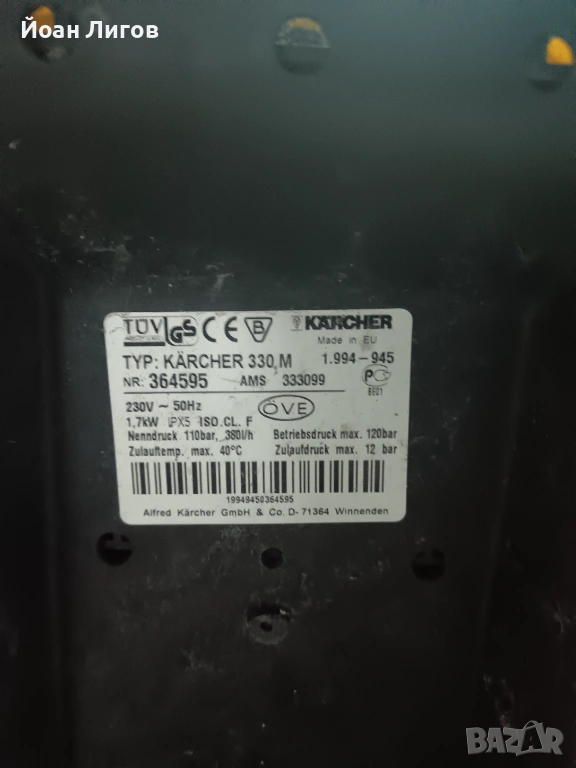 Водоструйка Kärcher 330 M – 1.7 kW, до 120 bar, снимка 1 - Други - 53026216 Водоструйка Kärcher 330 M – 1.7 kW, до 120 bar, снимка 2 - Други - 53026216 1/2