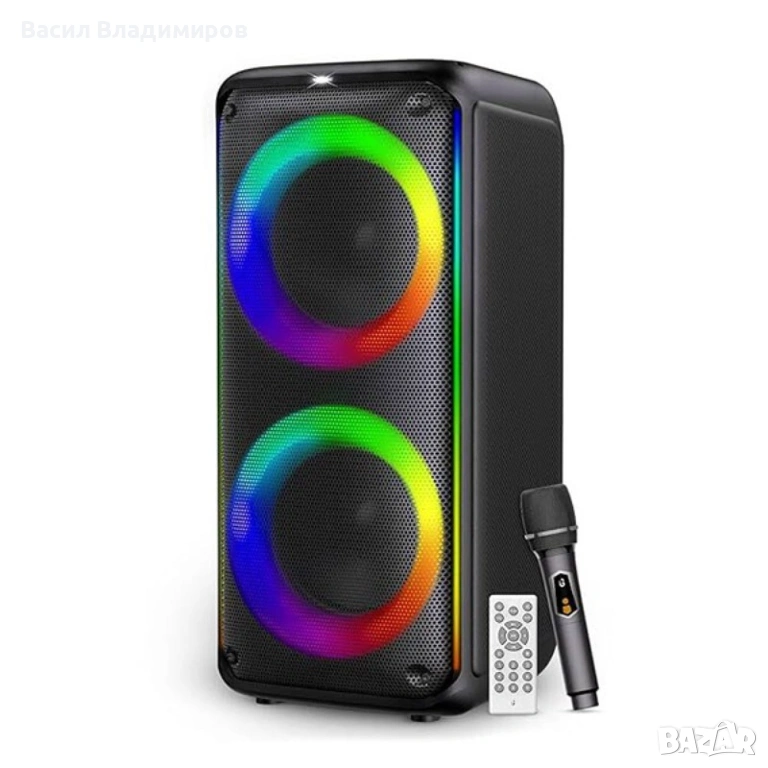 KTS1909 Безжична Bluetooth тонколона 5.0 с двойни 8-инчови 60W високоговорители и RGB светлини.