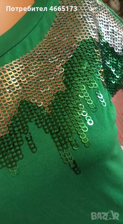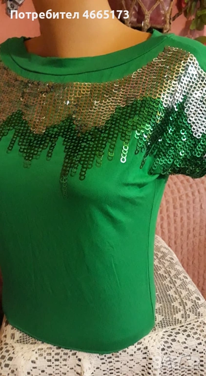 Дамска тениска в зелен цвят с пайети