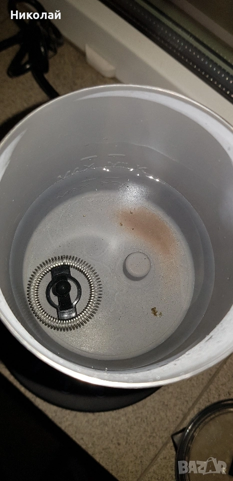 Работи нормално. Забележката е снимана-петно,където се върти диска за разпенване.