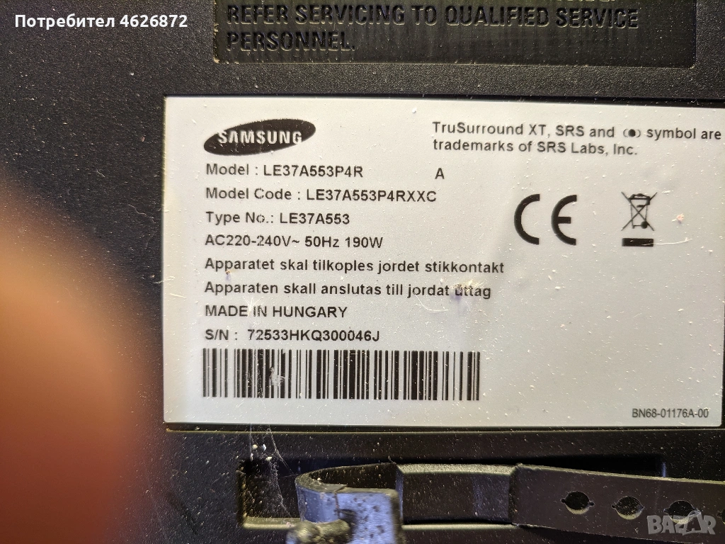 SAMSUNG LE37A553P4RXXC-MT8226 /BN41-01019A-BN44-00216A-Т370HW02 V402-VIT71037.50 → Обява 53026735